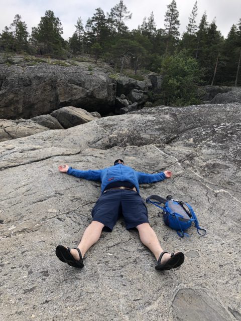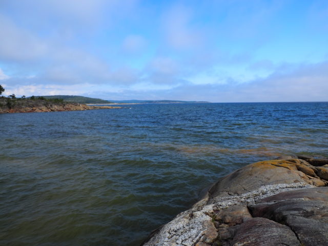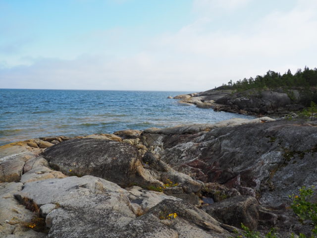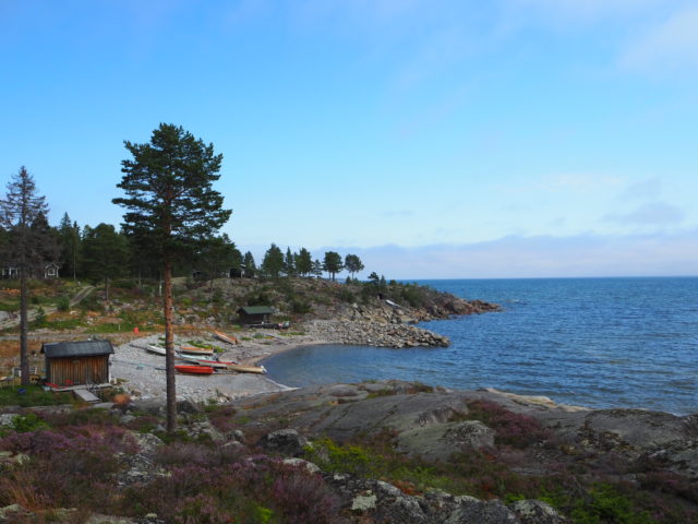 Swedens Ostküste in Norden ist wunderschön. Zwischen den Felsen gibt es Sandbuchten und am Ufer stehen Ferienhäuser wo die Schweden den Sommer und die Wochenenden verbringen. Wir haben uns mit einigen unterhalten und sie waren alle tiefen-entspannt. Eine Frau hat uns direkt ihre Tomaten, die im Gewächshaus an der rauen Küste reifen, zum Probieren angeboten.