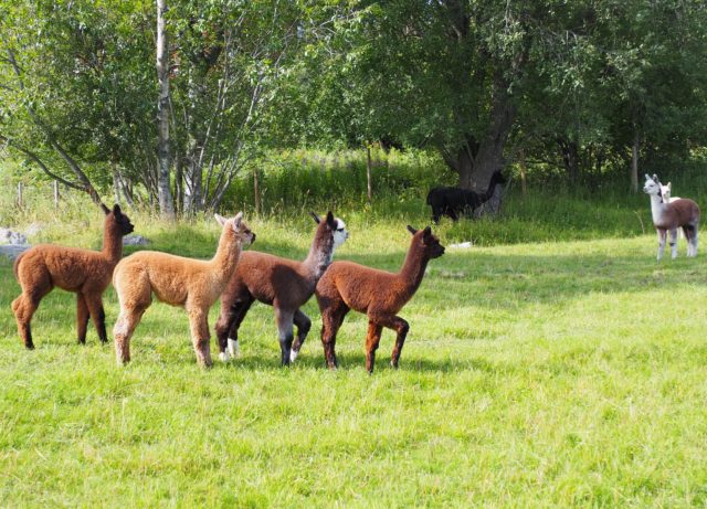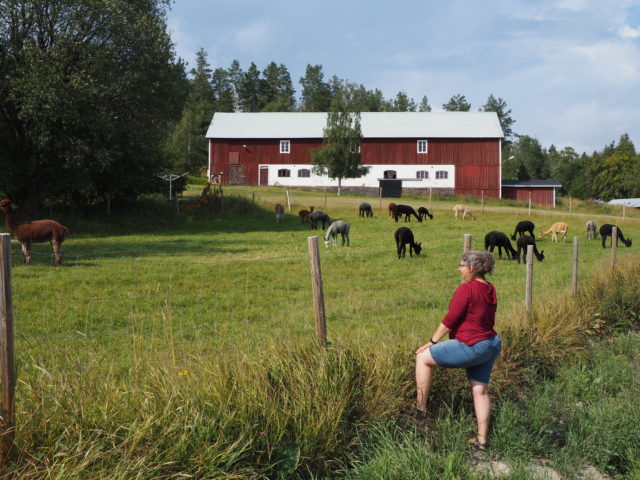 Elche wollten wir sehen. Statt dessen sahen wir Lamas. Von dem Besitzer haben wir dann gelernt, daß man seit geraumer Zeit versucht Lamas in Schweden anzusiedeln. Sie sollen den Elchen, deren Zahl extrem zugenommen hat, das Futter wegfressen, so daß mittelfristig die Elchpopulation abnimmt. Auf dieser Farm wird experimentiert und gezüchtet um die Lamas an das raue Klima anzupassen.