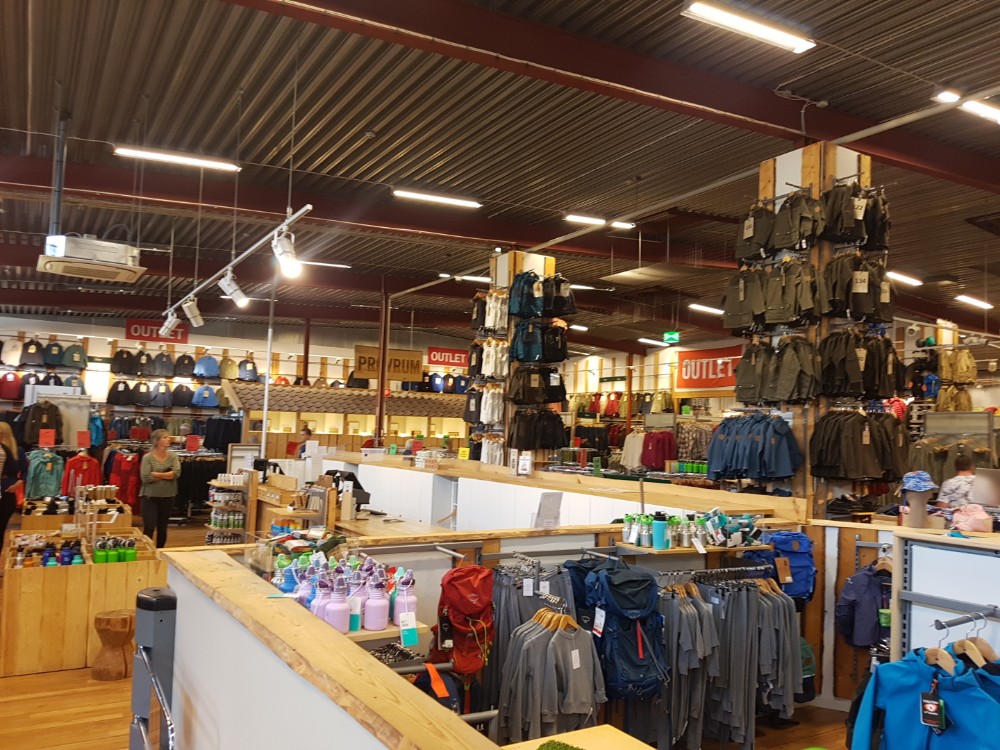 In Örnsköldsvik, der Schwede sagt auch Ö-vik weil es ihm selbst zu kompliziert ist, gibt es das Paradies für Outdoorfans, den Outlet Store von Fjäll Raven. Hunderte Quadratmeter Klamotten, Schlafsäcke, Rucksäcke, Angelzeugs usw..