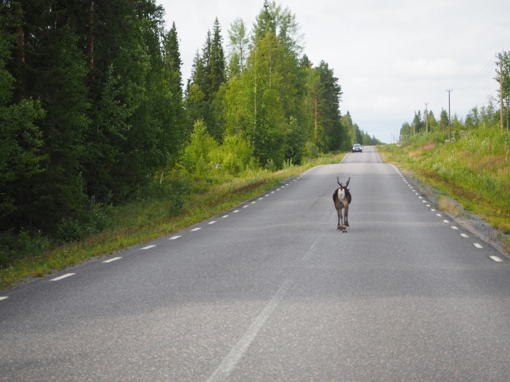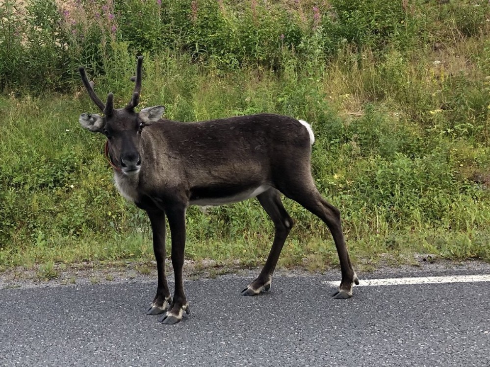 Auf der Strasse zum Angelfluss ist uns dann noch Rudolph begegnet. Das erste Rentier auf der Reise. Ganz gemütlich ist er mitten auf der Strasse gelaufen.
