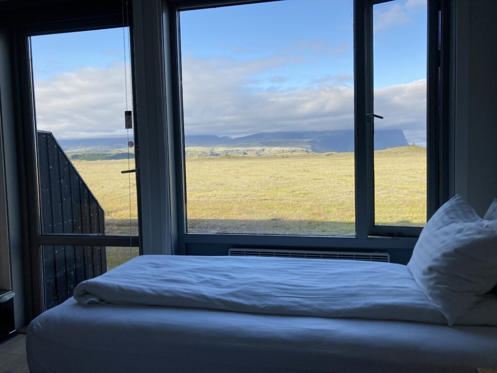 Durch die großen Lavafelder der Eldhraun geht es zu unserem nächsten Hotel, das Fosshotel Nupar.