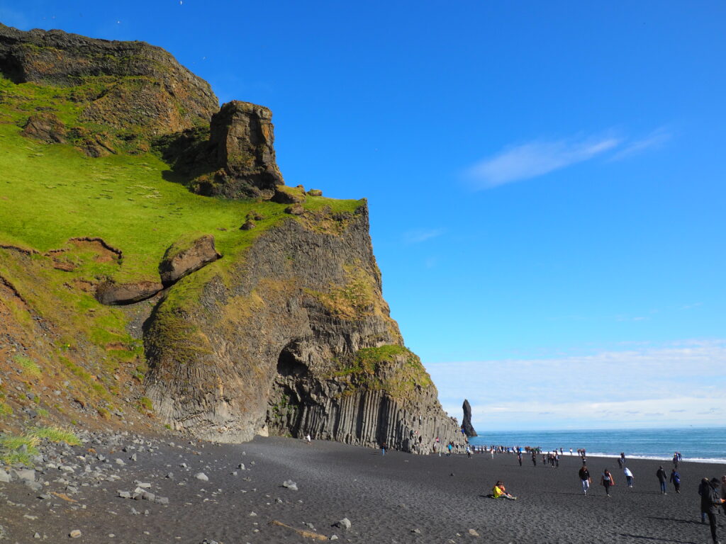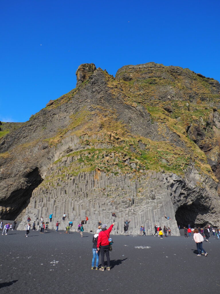 Die letzte Station für heute, ist der Strand von Reynisdrangar mit seinen gigantischen Basaltsäulen und aus dem Meer ragenden Lavasäulen. Auch hier gibt es wieder viele Puffins in den Felsen und auch auf dem Meer. Mit Fischen in den Schnäbeln fliegen sie aus dem Meer zurück zu den Klippen.