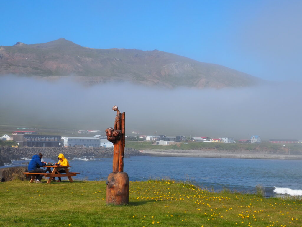Borgarfjödur, dieser Ort ist magisch mit seinen bunten Häuschen, den Bergen und dem blauen Meer. Wir haben Glück und das Wetter ist perfekt. Nachdem sich der Morgennebel verzogen hat haben wir strahlend blauen Himmel. Der Ort lebt von der Fischerei, aber vor allem vom Tourismus. Die Touristen kommen hauptsächlich wegen der Puffins. Dazu mehr im nächsten Beitrag.